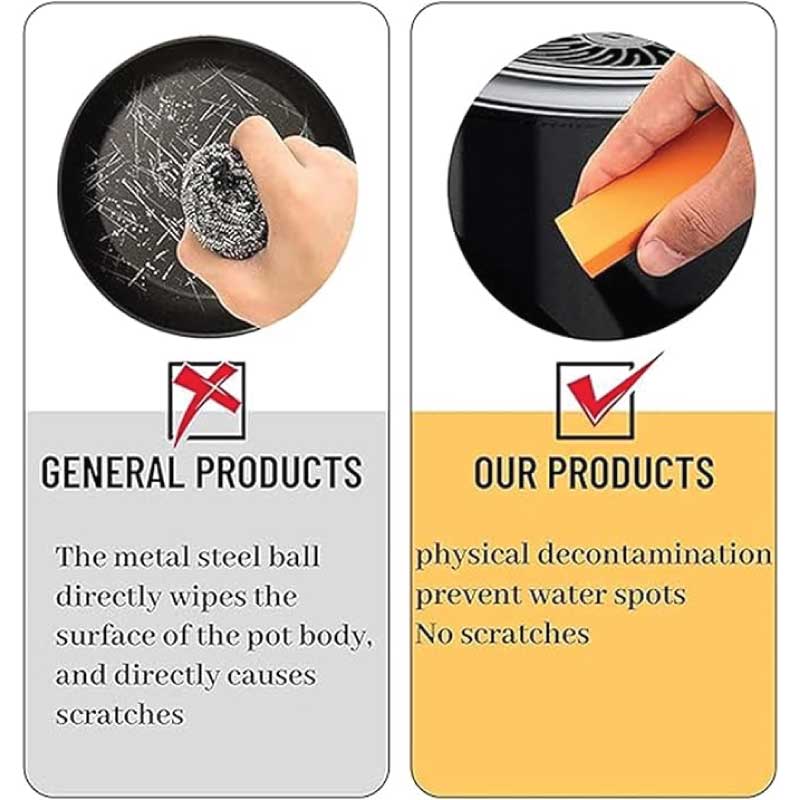 উচ্চ দক্ষতা: অরেঞ্জ ম্যাজিক স্পঞ্জটি বিশেষ ধরনের ম্যাজিক ফোমের তৈরি, যা শক্ত দাগ, ময়লা, এবং ধুলো সহজেই তুলে ফেলে। এটি সাধারণ স্পঞ্জের তুলনায় অনেক বেশি কার্যকরী এবং পরিষ্কারের কাজে দ্রুত কাজ করে।